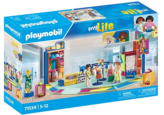 – Ce set comprend trois personnages PLAYMOBIL, un bâtiment avec un comptoir de vente, des sacs à provisions, un porte-vêtements et de nombreuses robes, chaussures et chapeaux pour des jeux de shopping imaginatifs dans la chambre d’enfant.