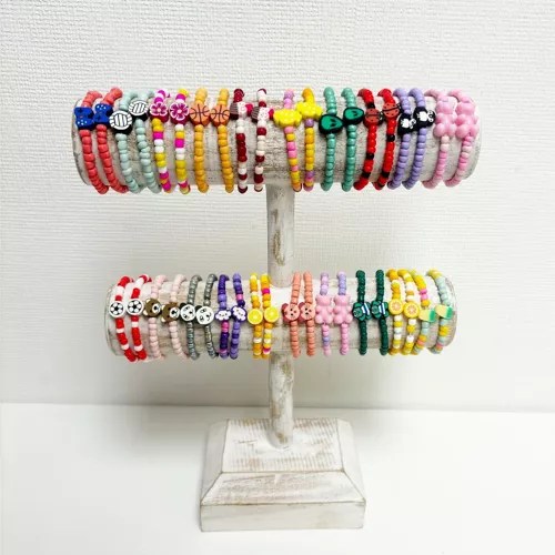 Les bijoux sont destinés aux enfants. Les perles du bracelet sont enfilées sur un élastique de +/- 14 cm. Cela permet aux enfants de mettre et de retirer facilement les bracelets eux-mêmes. Ce bijou est fabriqué à la main à Middelburg, aux Pays-Bas.
