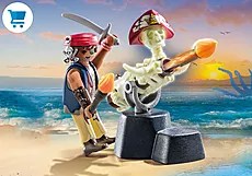 Le pirate se lance à la quête de précieux trésors. Va-t-il y arriver ? Comprend un personnage, un canon en os fonctionnel et deux projectiles de feu.