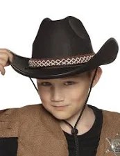 Ce chapeau de cowboy est pour enfant. Il est noir, avec un bandeau brodé à sa base. Au maximum, il mesure 60 cm de tour de tête.