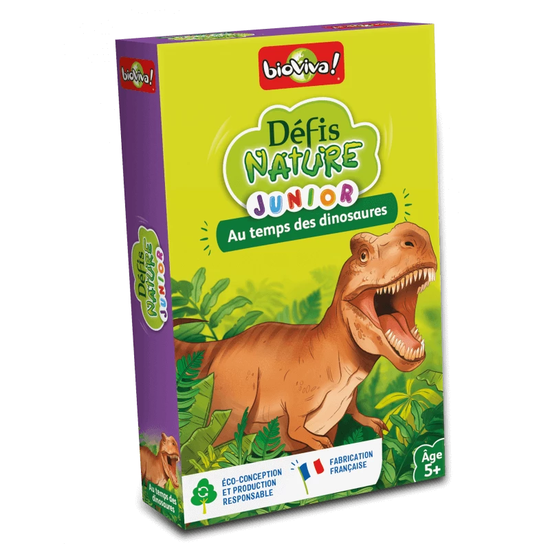 Partez à la rencontre des dinosaures avec Défis Nature Junior – Au temps des dinosaures ! Découvrez vos dinosaures, comparez leurs caractéristiques en vous aidant de la toise graduée et remportez un maximum de cartes !