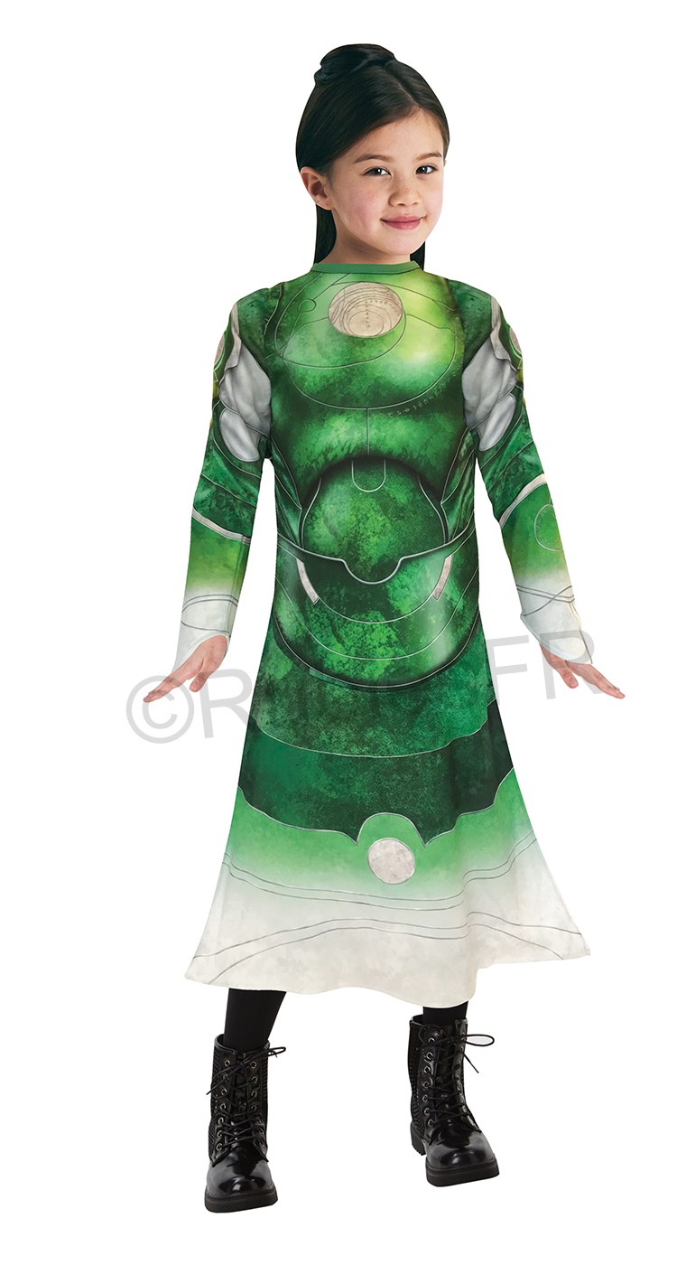 Une tunique à manches longues en jersey vert imprimé avec détails blancs/argentés et arrivant aux genoux, représentant la tenue de l’héroïne Sersi dans le nouveau film Marvel « Eternals ». Taille S,M et L. Déguisement sous licence officielle.