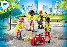 Un malaise ? Un accident ? Une douleur soudaine ? Pour toute question liée à la santé, on peut compter sur cette équipe de choc, prête à intervenir en toute circonstance. Grâce à leur matériel dernier cri, ils peuvent répondre à vos attentes et soigner petites et grandes blessures. Ce pack de jeu contient quatre personnages habillés en tenue de secouriste ainsi que différents instruments de médecine tel qu’un défibrillateur, une poche ou encore une trousse de premiers secours. Ce set permet de compléter un univers hospitalier ou bien simplement d’en débuter un.