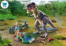 • Ce set comprend un personnage PLAYMOBIL, un tyrannosaure Rex, une moto avec remorque, une flaque d’eau avec une empreinte, une loupe, un appareil photo, une carte et du matériel de recherche supplémentaire.