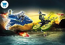 Décollez pour une poursuite aérienne palpitante ! Le jet de la police poursuit le voleur qui prend la fuite sur son drone nouvelle génération. Dimensions du jet déplié : 24 x 18 x 7 cm (LxPxH);