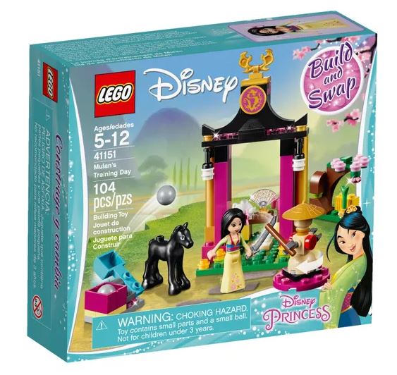 L’entraînement de Mulan est facile à construire et parfait pour recréer les moments préférés du film. Mulan peut s’entrîaner à l’aide du mannequin, son épée et la catapulte avec des rochers, avant de faire une pause avec son poulain, Khan.