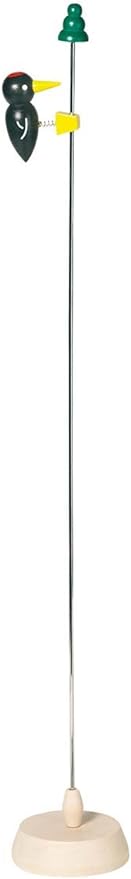 Ce petit pivert n’a rien trouvé de mieux que cette barre métallique pour s’amuser. Sur un socle en bois rond une barre métallique est fixée avec une boule de bois rond à l’autre extrémité. . Tirez leur la tête vers l’arrière et ils s’activeront à piquet la barre métallique de haut en bas. Amusant. Peut servir d’objet décoratif.