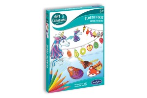 Une activité manuelle avec une technique amusante pour réaliser d’adorables bijoux. En quelques minutes, les feuilles se réduisent de 7 fois leur taille et épaississent ! Ce coffret créatif propose également une feuille de Plastique Folie vierge pour que vous puissiez inventer et dessiner vos propres créations ! Un super loisir créatif pour les artistes en herbe.