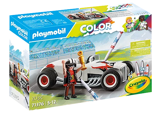 Ils sont de retour ! Après 45 ans, la collection PLAYMOBIL Color fait son grand retour ! En collaboration avec CRAYOLA, cinq nouveaux coffrets comprennent de nombreux accessoires blancs qui peuvent être coloriés de manière unique. Ils peuvent ensuite être facilement lavés et coloriés à nouveau. Cette voiture de course peut être intégralement personnalisée ! Que ce soit des flammes, des lignes ou des éclairs, elle peut ressembler à tout ce que vous imaginez. Sur les bras du pilote, vous pouvez également créer des tatouages originaux.