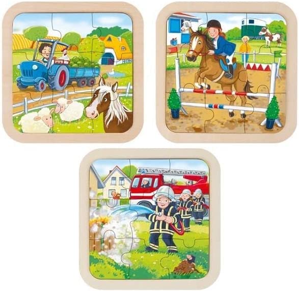 Puzzle en bois 9 pièces Goki ref 57382 thème les pompiers