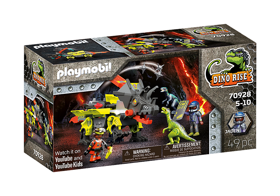 En alliance avec le gang de la mine, la Comet Corp. s’oppose à l’équipe Dino Rise avec l’aide d’un robot-dino de combat blindé. Comprend un personnage du gang de la mine, Jaden et deux velociraptors. Dimensions : 27.5 x 9.5 x 13.5 cm (LxPxH).
