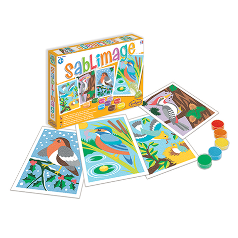 Épatant ! Cette gamme d’activité artistique a été conçue pour que de très jeunes enfants puissent facilement réaliser de jolis tableaux naïfs sans se salir. Avec Sablimage, il suffit de décoller les surfaces préencollées et de les saupoudrer avec les différents sables proposés. Une activité ludique, manuelle et artistique idéale pour développer la créativité de votre enfant, l’habileté manuelle et le sens des couleurs ! Un loisir créatif révolutionnaire