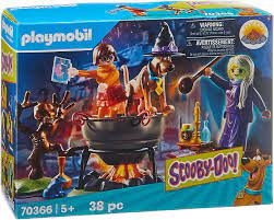 La boîte contient 38 pièces, dont : les personnages de Vera, Scooby-Doo et la sorcière, 1 chaudron, des animaux et des accessoires (feu, flacons, tabouret, bougie, etc.).