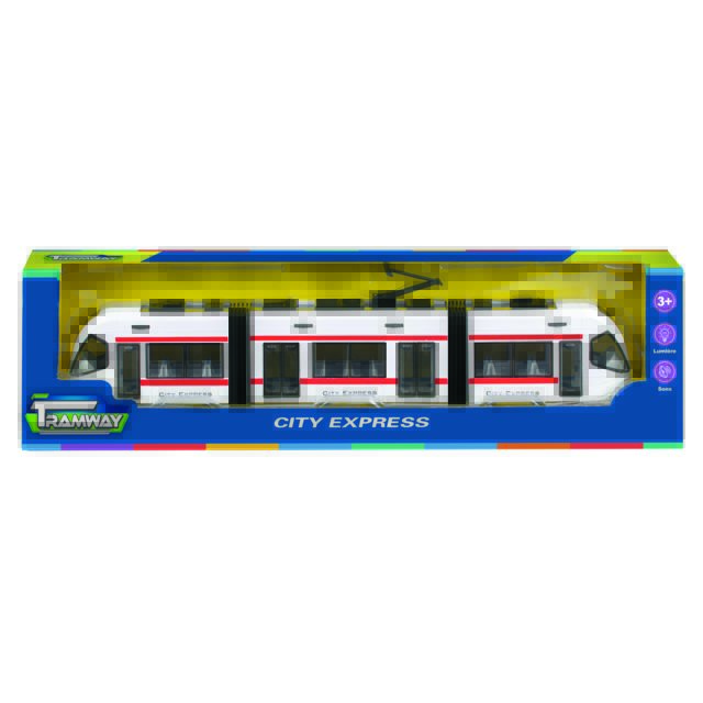 Tramway 3 wagons sons et lumières articulés de 47 cm. Véritable reproduction avec sièges à l’intérieur pour que les passagers s’assoient, une cabine pour conducteur à chaque extrémité et les portes s’ouvrent grâce aux molettes. Il reproduit les sons réalistes du tramway. Dès 3 ans. Alim. 3piles LR44/AG13 fournies. Dès 3 ans.